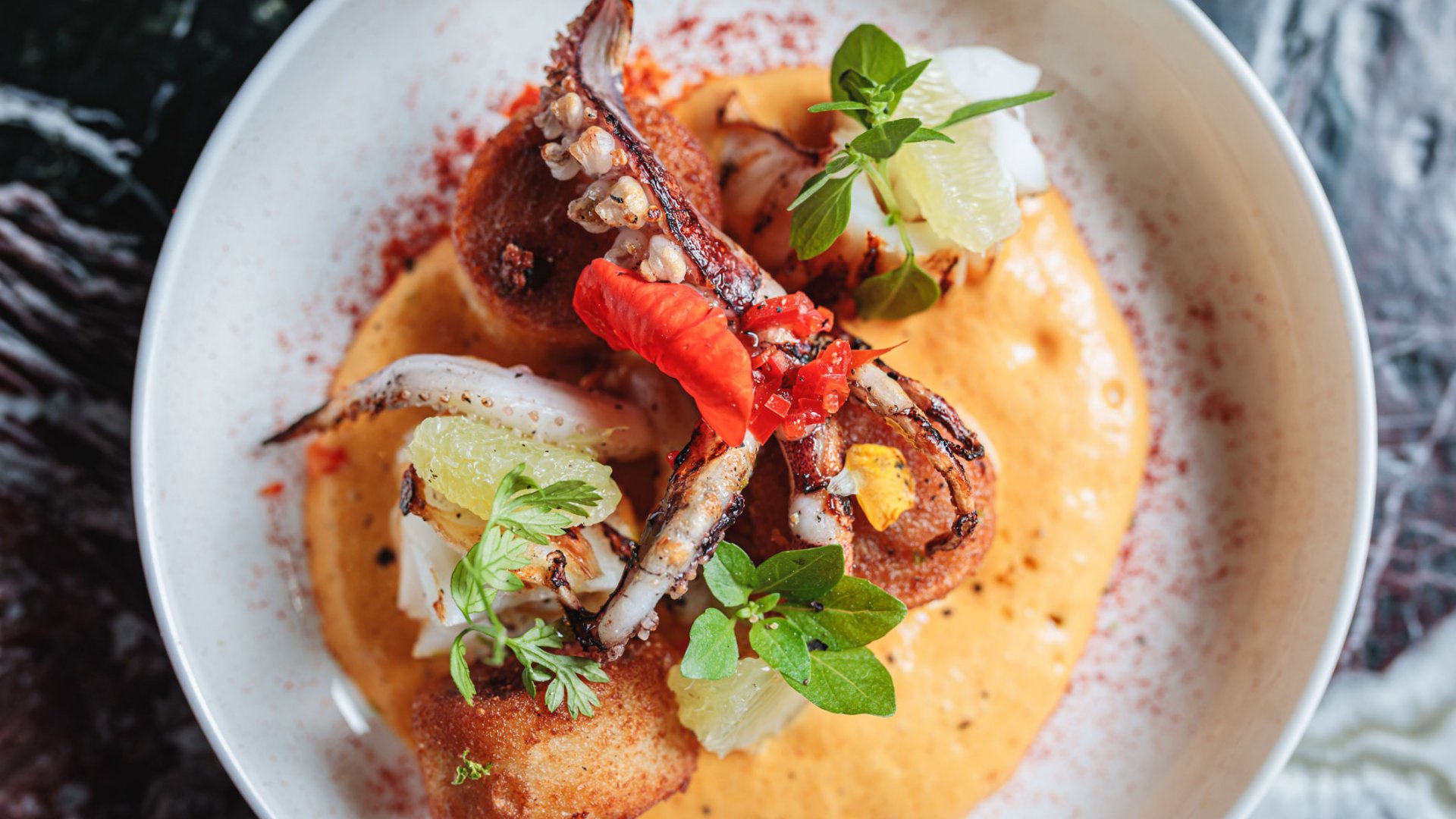 Cuisine créative, explosive, passion pour les oxalis et le feu, notre chef, Morris Clip, affirme sa personnalité aux côtés de son équipe au SPECTO.